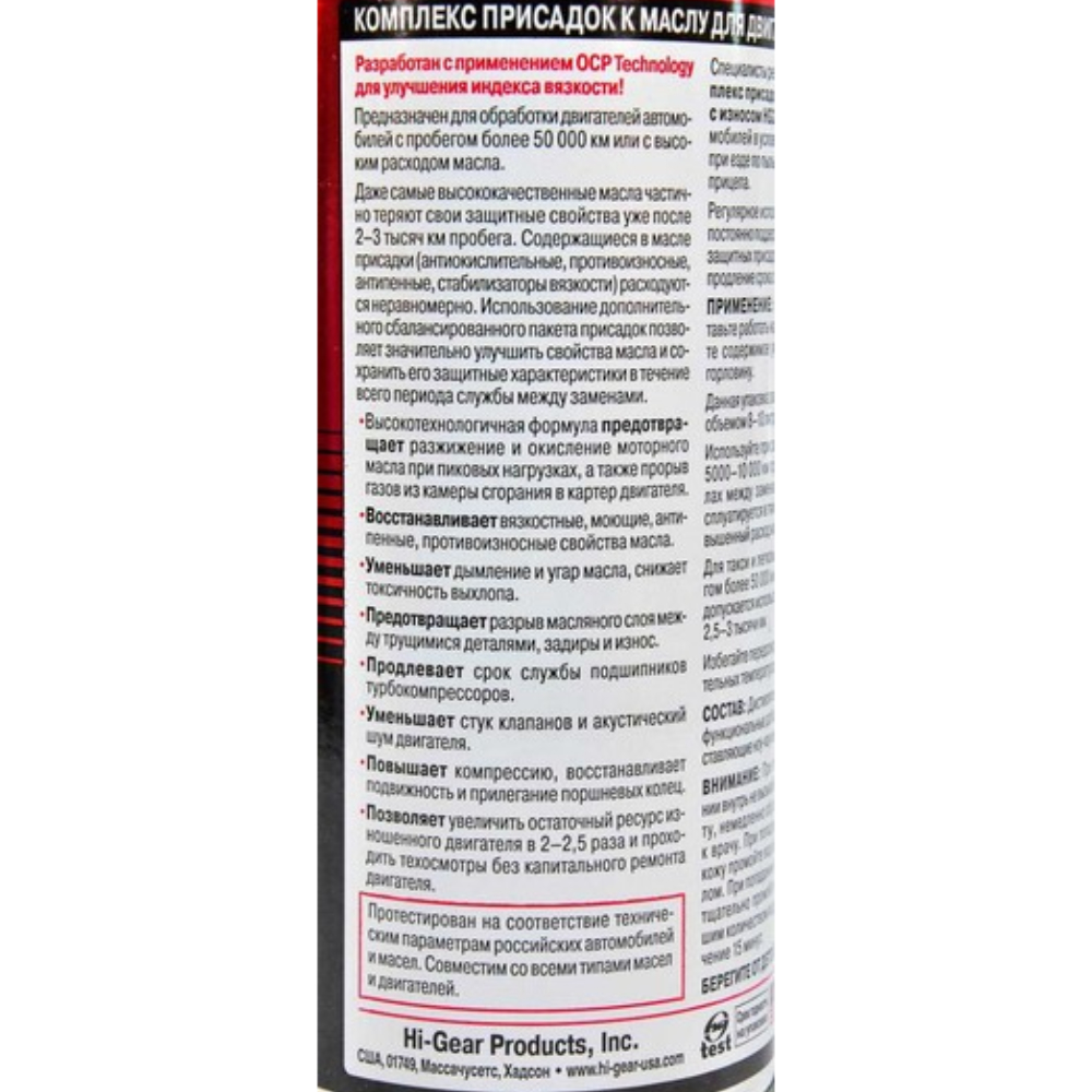 - Комплекс присадок к маслу Hi-Gear для старых автомобилей и такси восстанавливает вязкостные, моющие, антипенные, противоизносные свойства масла