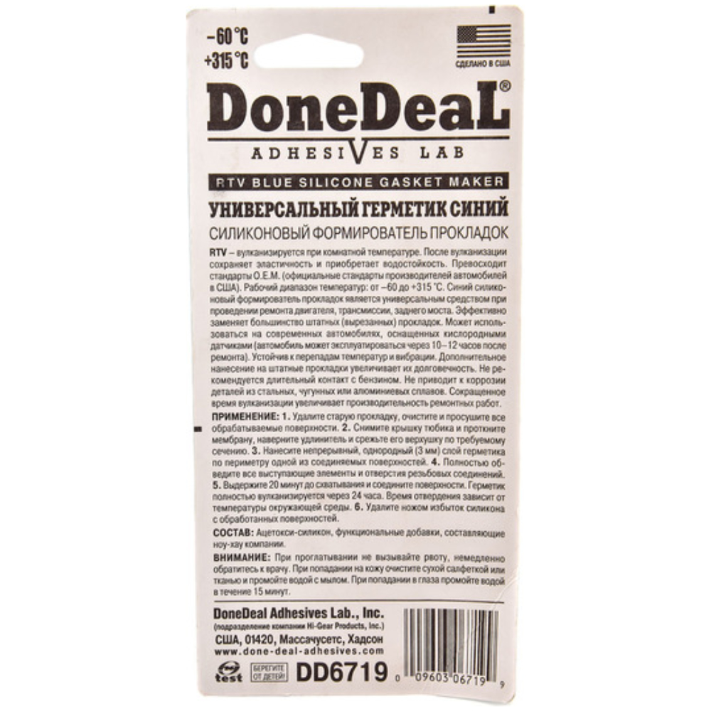 • DD6719 безпечний для автомобілів, обладнаних датчиком кисню (після повної вулканізації герметика);