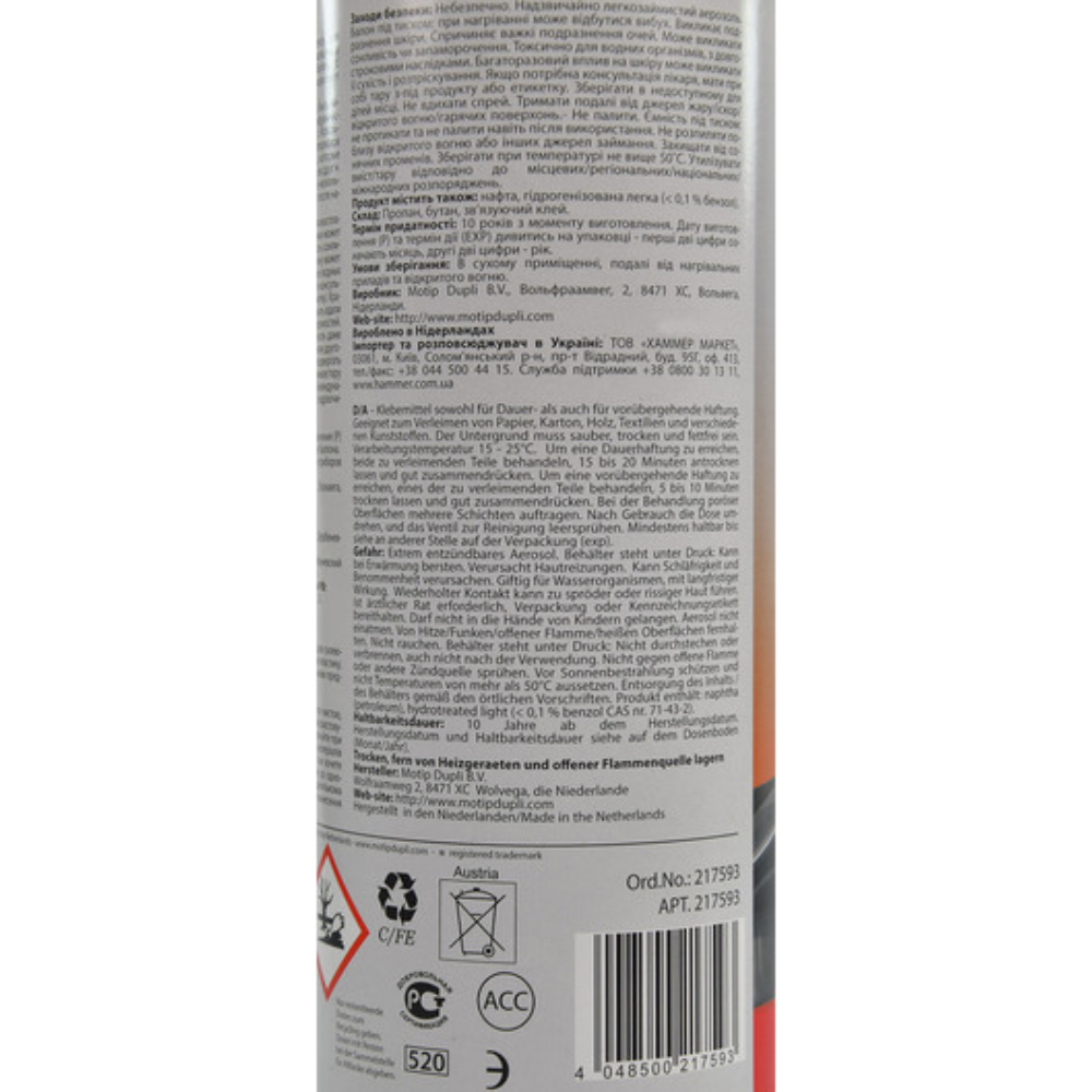 Універсальний аерозольний клей Presto Klebe Spray 217593 400 мл - універсальний аерозольний клей застосовується для склеювання паперу, картону, дерева, текстилю, шкіри та різних видів пластику. Аерозольна упаковка дозволяє працювати з великогабаритними предметами. Регульований клапан дає можливість дозувати нанесення клею.